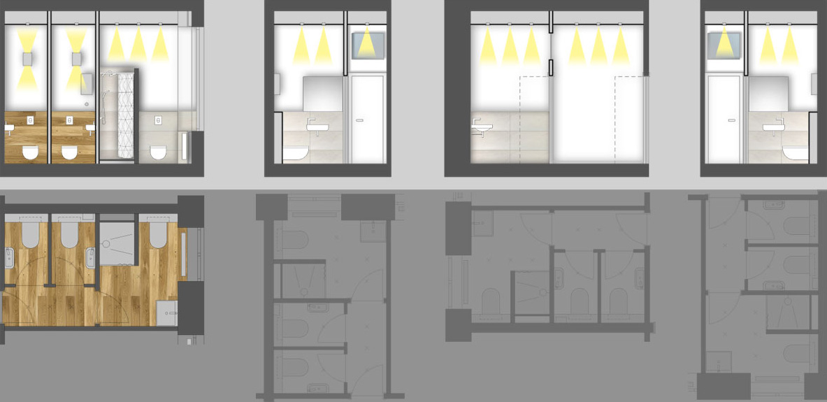 Viele alte Wohnungen haben kleine Bäder, die eng und dunkel sind. Viel Spielraum für alternative Aufteilung bleibt in diesen Bädern häfig nicht. Bei der Sanierung der Wohnung oder des Bades kommt es daher entscheidend auf die gute Planung und Platzoptimierung Ideen, so wie die Auswahl der passenden Sanitärobjekten und auf die richtige Beleuchtung und Farbwahl an.